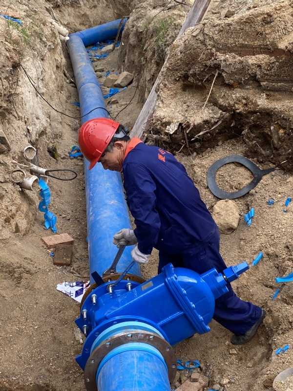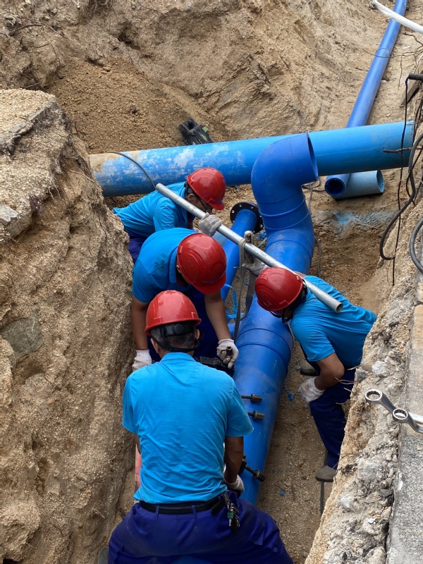 齐心协力,将新管线预设到位,准备停水后管线改道热熔对接