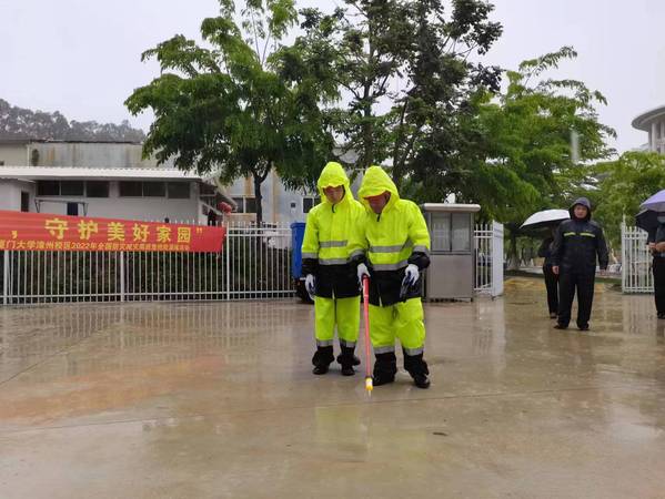 思明校区工程维修部对防汛设备进行调试运行,对防汛重点区域有针对性地实施安全检查,密切关注思源谷水库水位及低洼区域积水情况