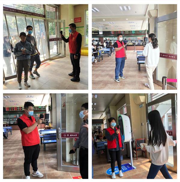 疫情就是无声的动员令,防控就是自觉的使命感。在午餐与晚餐用餐、取餐高峰时段,本部党支部的党员志愿者按照既定班次分别前往芙蓉、东苑餐厅志愿服务活动。在出入口,党员志愿者们在手持红外测温仪实时监测入内人员的体温的同时,严格遵照疫情防控要求,有礼有节的善意提醒前来用餐的师生员工及家属自觉规范佩戴好口罩,选择正确的出入口进出。在餐厅内,党员志愿者们始终严把“安全距离”关,对个别出现的取餐扎堆闲聊和两人以上同桌共餐的现象主动上前规劝,并及时予以纠正。尽管每每不时需要不厌其烦的重复雷同的话语和动作,长时间服务下来不免口干舌燥,但大家依然不辞辛苦、一丝不苟地坚守志愿服务岗位,尽己所能地为助力校园疫情防控而持续输出后勤人的力量。