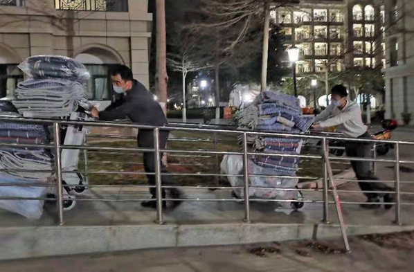 在大家入住的16日当晚,服务处的男管理员们自发将50床被褥、床垫运送到宿舍区,一车拉完不够,再拉一车;服务处副经理黄爱华带头将被褥、床垫搬运和分发到各个宿舍,确保人人都有舒适的睡眠环境。