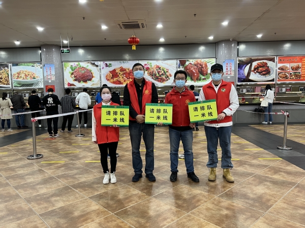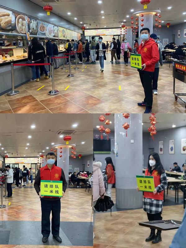 3月22日起,综合党支部组织党员志愿者到勤业餐厅、海韵学生公寓一期餐厅协助维持师生打餐秩序、严格遵守保持“一米线”安全距离、体温监测管控等工作。连日来,综合党支部全体党员干部、入党积极分子、青年文明号志愿者等纷纷披上战衣,冲锋在志愿服务第一线,哪里有需要,哪里就有“红马甲”们的身影。