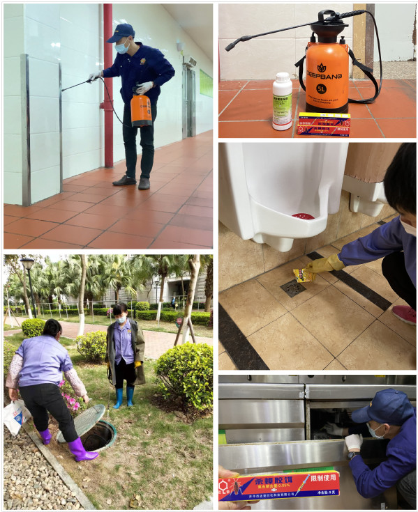 重时机,除四害。消杀是建立全面防控必不可少的步骤,春季也是病媒生物繁殖的高发季节,正是集中消杀的大好时机,公司以爱卫运动契机,在托管区域广泛喷洒药剂对蚊蝇虫卵消杀,并在垃圾桶、下水道、阴暗潮湿地等四害易孳生地投放灭鼠、蟑螂等药物,降低病媒生物密度,有效预防媒介疾病发生。