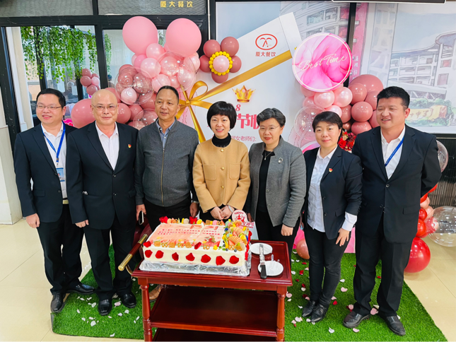 双十中学校餐厅庆祝妇女节,公司领导与校领导共同在教工餐厅切蛋糕