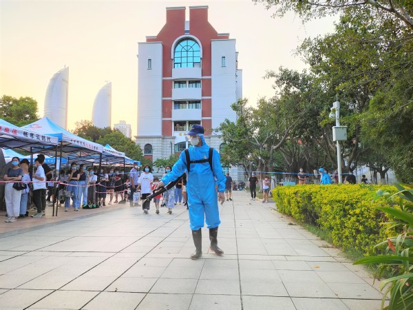 自疫情发生以来,南强物业在政府、学校、集团的坚强领导下,以高度的企业责任感自觉严格履行企业主体责任,认真落实“疫情就是命令、防控就是责任”的工作要求,率先接种新冠疫苗,做好自身防疫工作,更好地守好防控第一线。在今年厦门两次疫情反扑的危急时刻,南强物业克服困难,齐心协力为夺取疫情防控和经济社会发展“双胜利”贡献出了力量,此间涌现出许多优秀事迹:翔安物业部员工舍小家为大家,把铺盖搬到战“疫”一线,吃住睡都在岗位上;海韵北服务处被白城社区指定为核酸检测采样点,服务处及公司周边项目员工全程协助做好检测工作;工程部成立工程部防疫消毒消杀小组,几天时间内消毒面积达11万平方米,完成了675组进出风口及234台空调的清洗、消毒任务,为厦门大学万名师生、医护人员安全保驾护航。