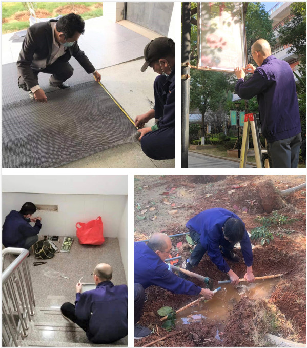 为确保校庆期间设施设备的正常运转,维修员提前对校园进行了全区域物业安全大检查,针对检查出的问题责任到人,以最快的时间维修整改到位。