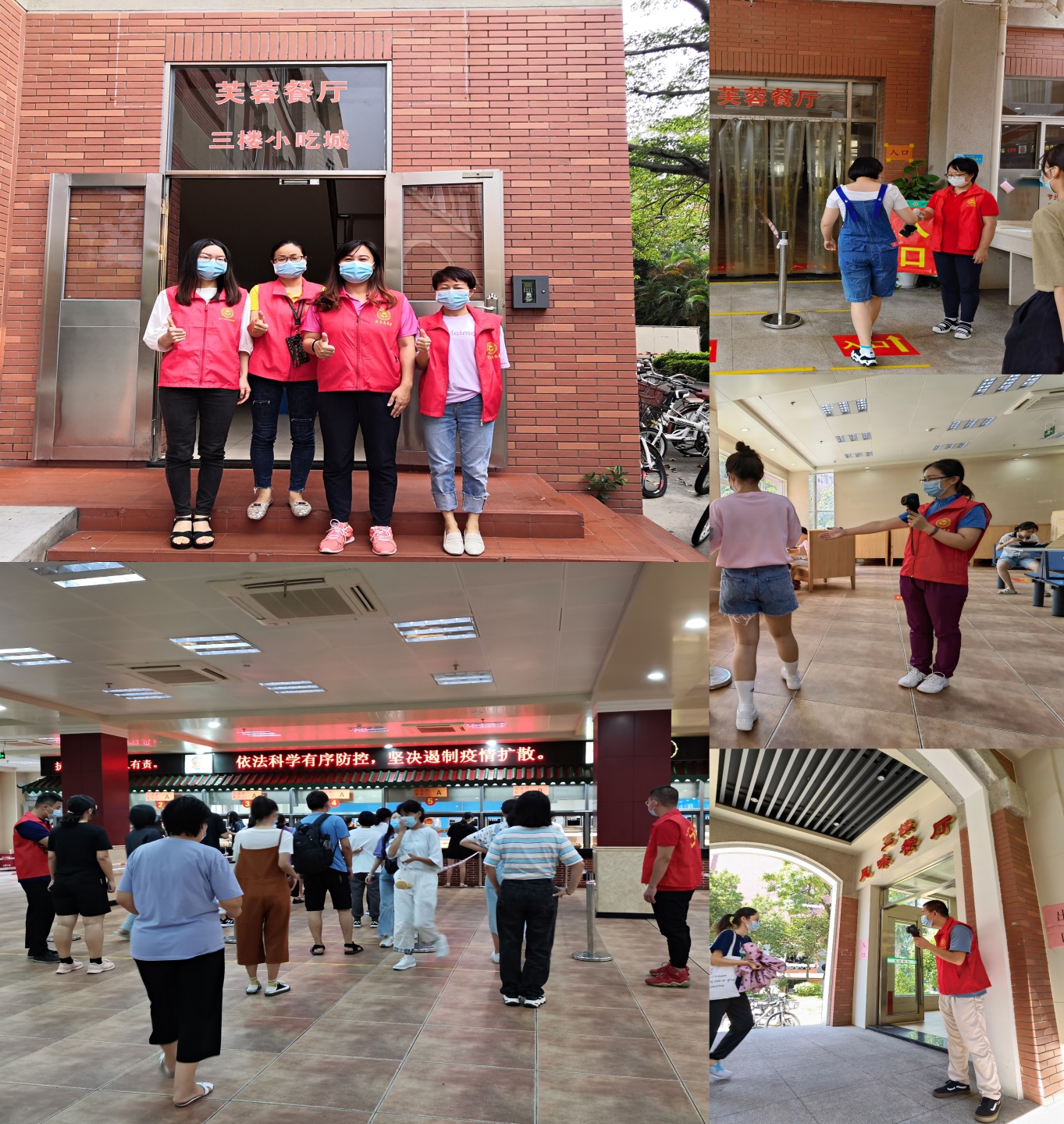 “哪里有需要,我就去哪里”始终是本部党支部党员志愿者在本次防疫志愿服务过程中服从调遣、身体力行的真实写照。在早、中、晚用餐、取餐高峰时段,本部支部的党员志愿者按照既定班次分别前往芙蓉餐厅、勤业餐厅进行志愿服务活动。在出入口,党员志愿者们手持红外测温仪实时监测入内人员的体温,提醒师生教工规范佩戴好口罩并选择正确的出入口进出。在餐厅内,党员志愿者们始终严把 “间隔一米”标准关,对排队购餐人员进行合理引导,及时上前规劝个别并肩闲聊人员各自退回一米线后。在打包台,党员志愿者们协助餐厅员工根据不同规格的餐盒配发盒盖,递送筷子、汤勺,并主动帮助手拿多份餐食的师生教工完成装袋。党员志愿者们认真负责,师生教工们积极配合,共同营造了有序排队、安全购餐的良好氛围。在勤业手工自制月饼分装作业和恢复堂食“送苹果·报平安”活动现场,无不随处活跃着党员志愿者们随叫随到、分工明确、配合默契的忙碌身影。挥洒的汗水与不竭的动力便是她们以自己力所能及的方式助力疫情防控的绝佳诠释。