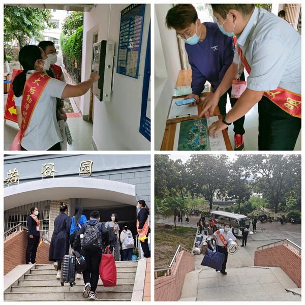 党员、青年文明号班组成员均亮身份参与迎新工作。新生第一次到漳州校区,对校园都很陌生,若谷园区管理员马赛为了告知相关地点,打印了校园地图,为学生指路。