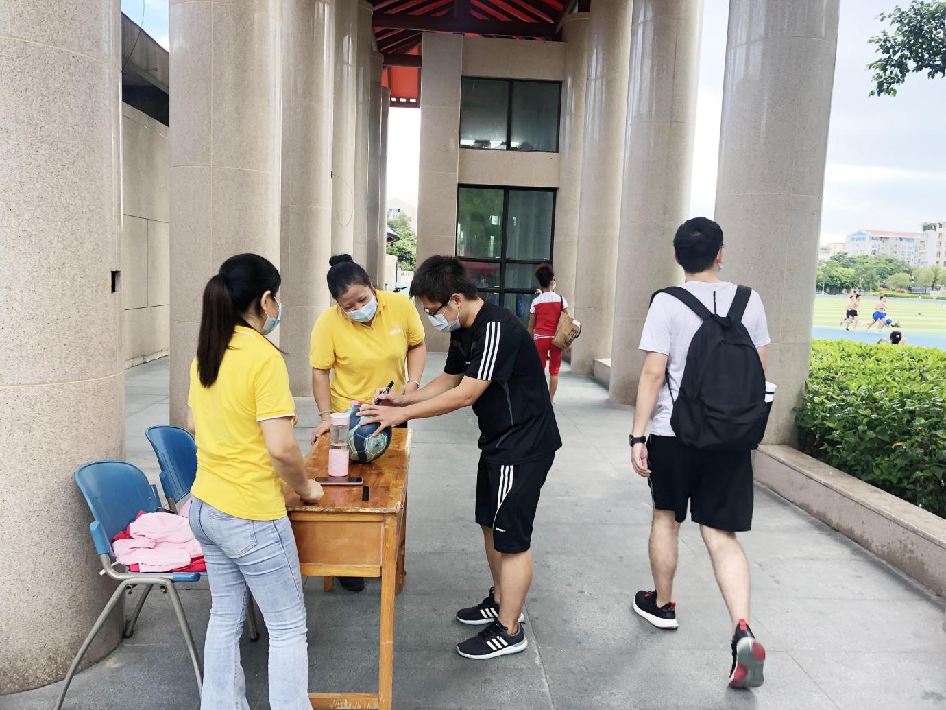在体育教学部、资产与后勤事务管理处的指导下,关闭室内体育场馆,暂停室外篮球场开放,东苑网球场继续实行预约入场,入场时需扫码登记、检查健康码。对开放的演武场、上弦场和海韵学生公寓田径场实行管控,加强锻炼器材和公共卫生间的消杀,同时还加强巡查,提醒师生勿聚集。在锻炼师生较多的演武田径场还设置了专门的出入口,安排工作人员值守,劝阻师生不带球类、食物等入内。此外,体育教学部党委副书记刘建敏,中心主任谢伟锋、副主任叶晓真下沉一线,昼夜巡查督促落实防疫工作。