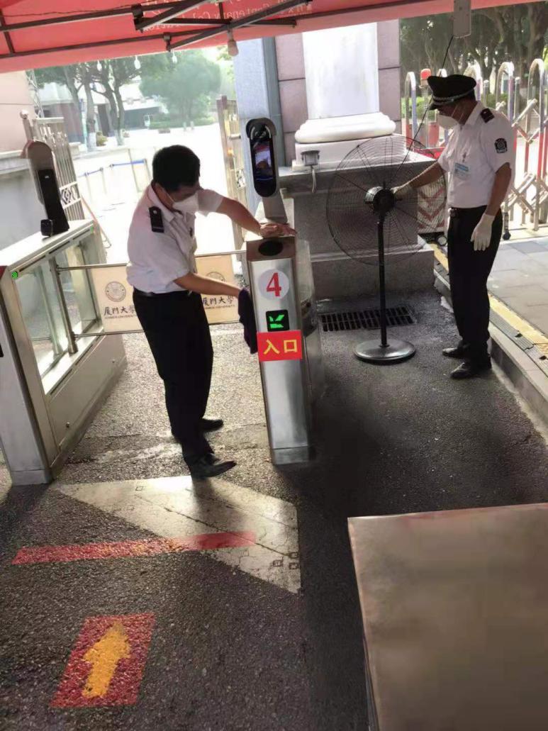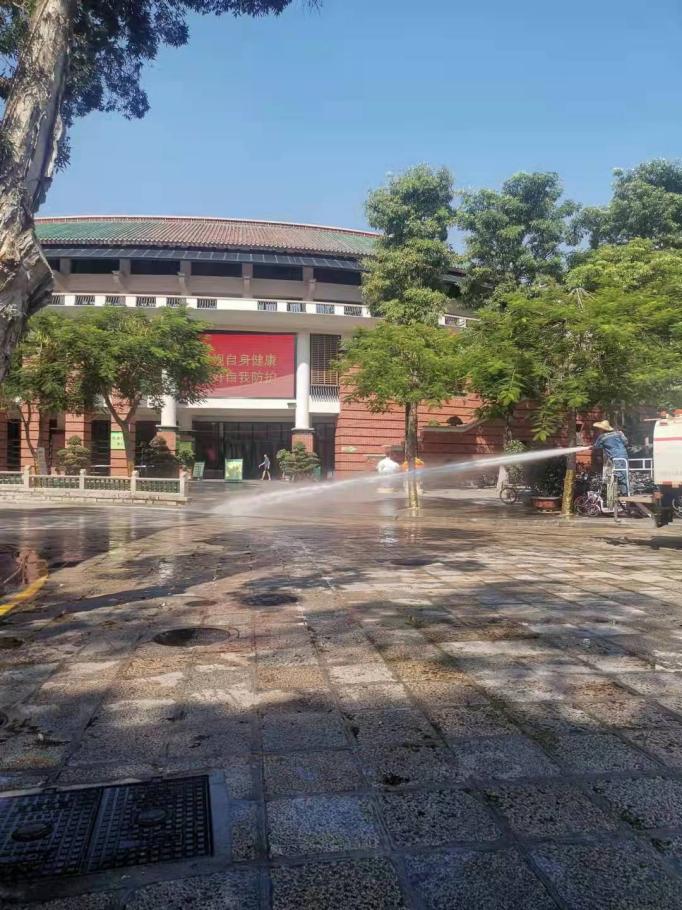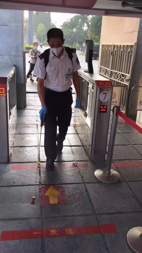 校门安防:对各校门值班室进行卫生大扫除,对各校门进出通道和周边区域每日消杀三次。