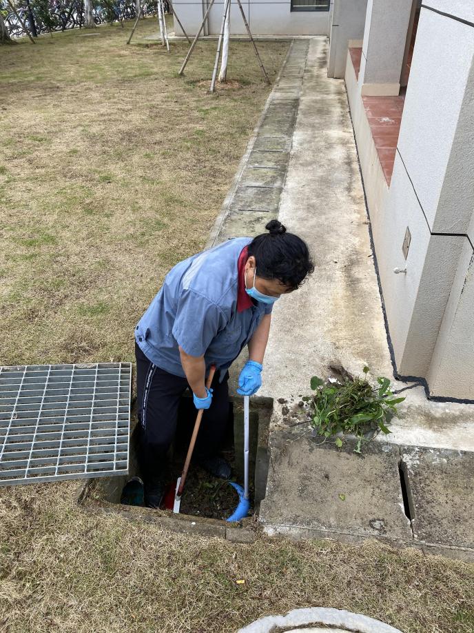 教工住宅:清洗和消杀教工住宅楼道209梯及加装电梯22个,垃圾点位43个;清理占用公共楼道废弃物5车,消杀明沟4141米、暗沟3402米、污水井627个。