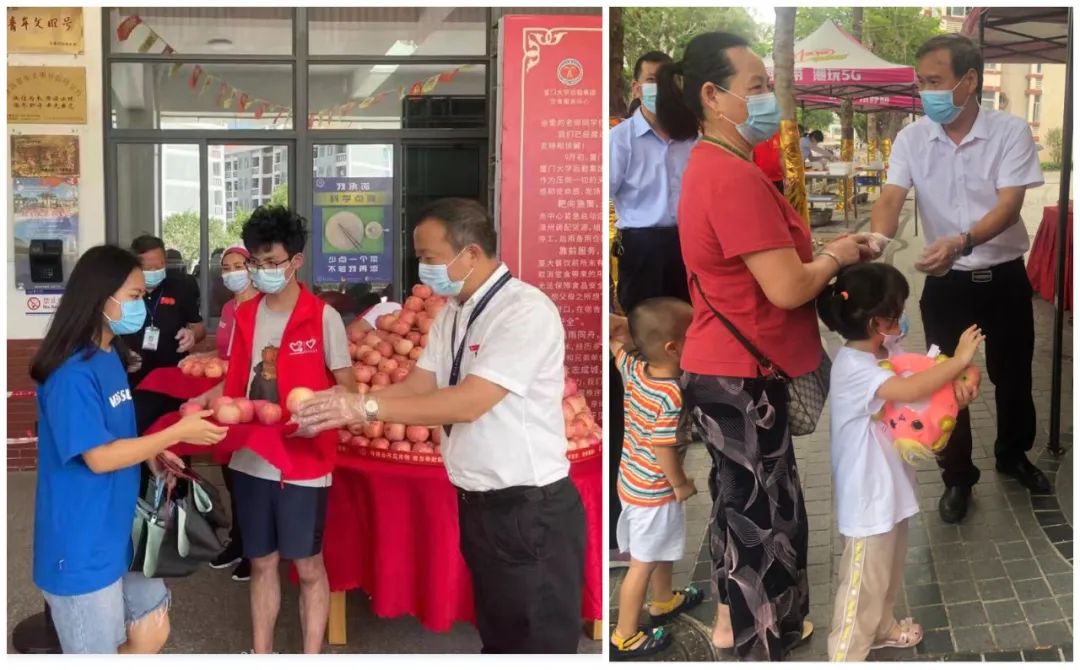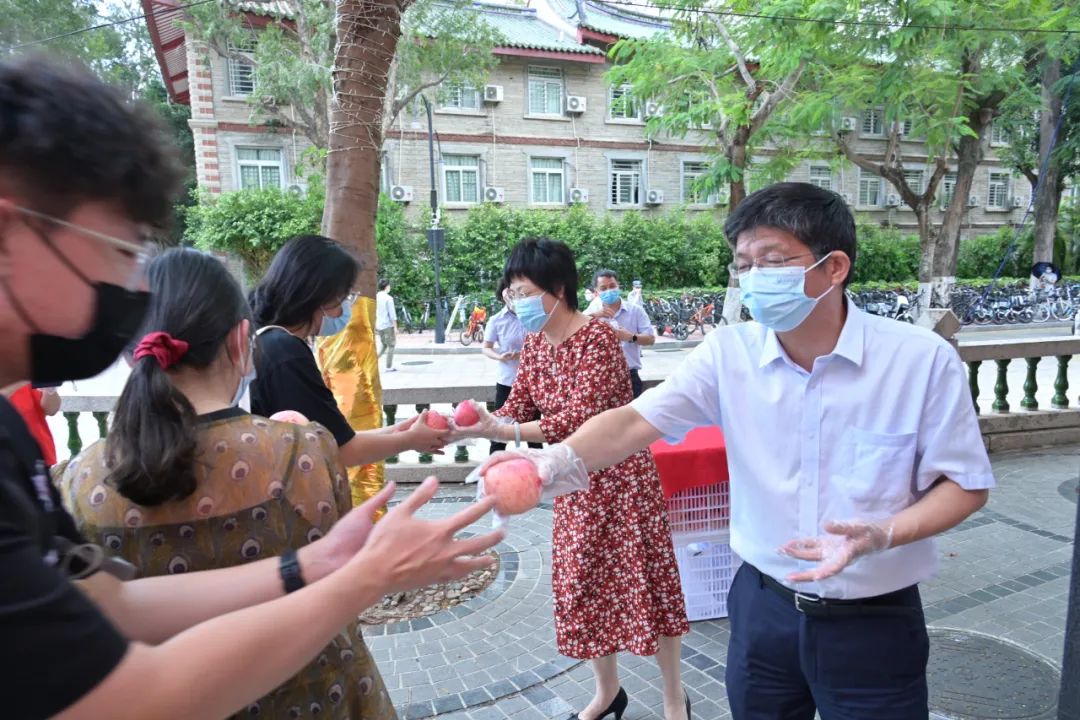 10月6日11:00多,恢复堂食的第一天午餐,思明校区勤业餐厅门口小广场,开展主题“守得云开见月明 担当奉献彰本色”的恢复堂食“送苹果·报平安”活动,为每个用餐师生员工送上一个苹果,祝愿平安健康。翔安校区竞丰餐厅门口广场也同步进行“送苹果·报平安”活动,校内其他餐厅也分别为每位用餐师生员工送苹果。这是饮食服务中心各餐厅继中秋节送每个同学一个月饼之后再一次为师生员工送“平安”,也赢得了广大师的欢迎点赞。