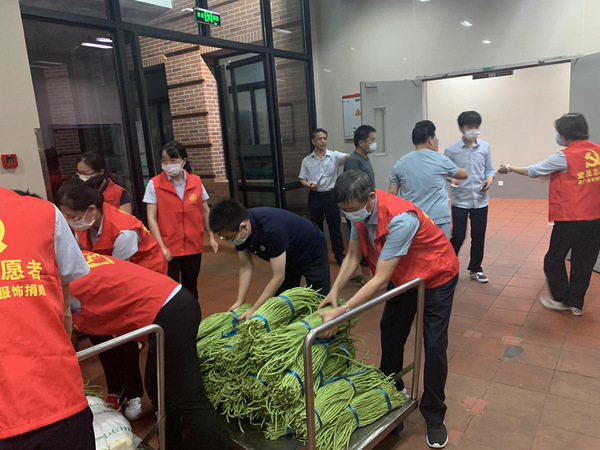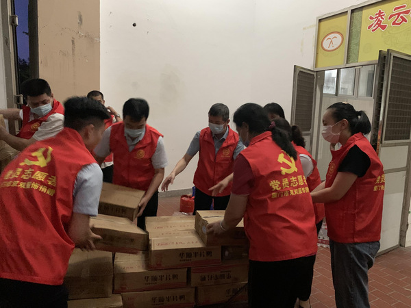 一枚党徽就是一份责任。因疫情影响,厦门市对同安区施行了进出管控,而饮食服务中心采购组的供货商有部分来自同安,面临随时断供的风险,形式十分严峻。饮食服务中心党支部全体党员与餐厅、采购组工作人员携手并肩,构筑起坚实的保价稳供防线。为保证厦门大学五万余师生员工的就餐需求,饮食服务中心启动紧急采购预案。在启动预案的当天,中心主任江森民带领支部全体党员,利用下班时间马不停蹄地前往采购组、勤业餐厅、芙蓉餐厅、南光餐厅装卸10吨冻品、20吨蔬菜,直至凌晨。期间,集团党委书记杨云良、副总经理陈有亮全程参与,亲力亲为,众人团结一心,为的就是打赢这场防控疫情的攻坚战!