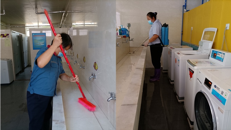 此外,学生宿舍还加强垃圾桶、垃圾点位的清洗消杀及楼栋公共盥洗室等的保洁消杀,确保了公共区域环境干净整洁。