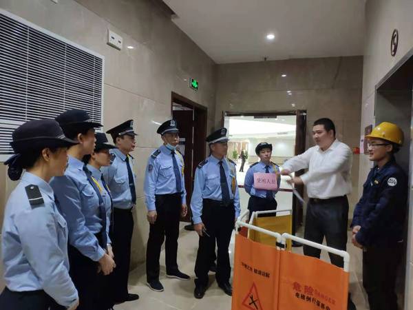 工程维修组:接到任务后的工程组立即将工作细分、量化到人,严格执行。3月28日前,对主楼群的柴油发电机、空调通风系统、各楼宇消防控制设备、会场设备、地下室水泵进行检修和保养。3月31日前完成35台电梯检修,以及照明系统、供水系统等基础设施修缮。每日加班加点奔波在岗位上,时刻紧绷安全这根弦,排除安全隐患。