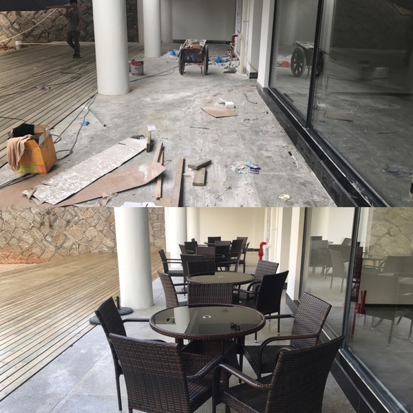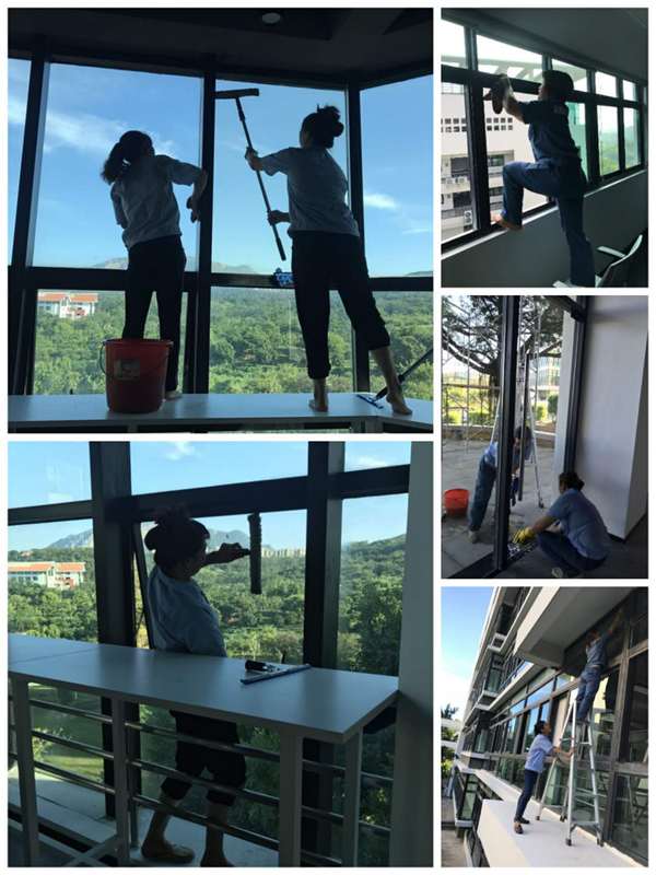 在承接项目前,因装修施工延迟,需要边施工边进行卫生打扫,这给我们的部门保洁工作带来一定的困难。尽管时间紧、任务重,但大家凝心聚力、起早贪黑、埋头苦干,清洁卫生死角,清除垃圾,反复擦洗、精益求精。员工们用实际行动诠释了“爱岗敬业、争创一流、艰苦奋斗、甘于奉献”的后勤服务精神,努力为学院师生创建温馨、舒适的工作、学习环境。