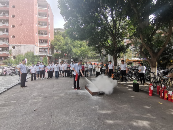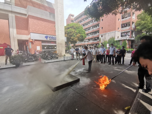 消防演练现场,孙俊逸老师为大家操作灭火示范,大家积极动手实践,在演练中学习标准化、规范化操作,切实掌握在第一时间正确、及时处理突发事件的能力。