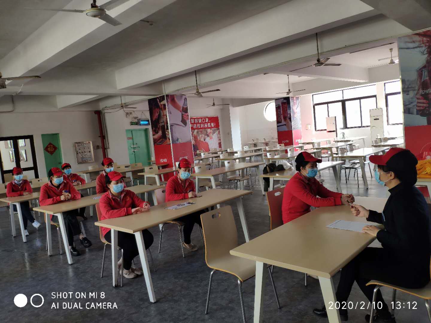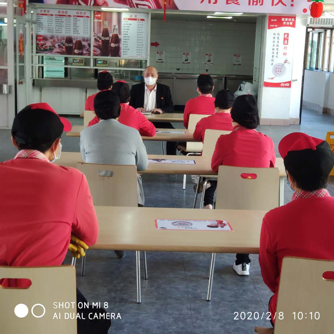 防控期间,公司总经理罗阳到餐厅为员工进行培训