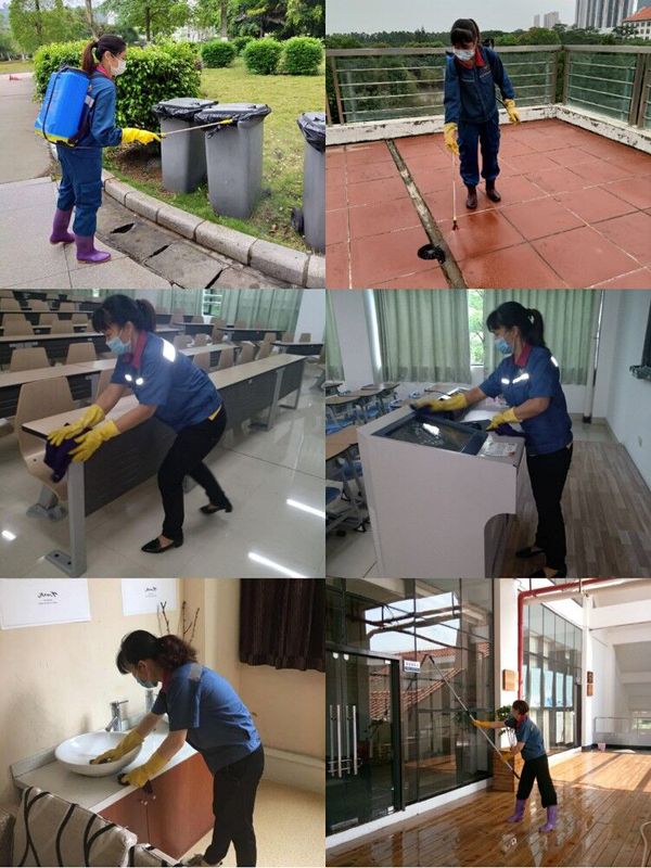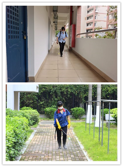 5月15日,漳州物业部开展开学前校园环境的保洁、消毒。