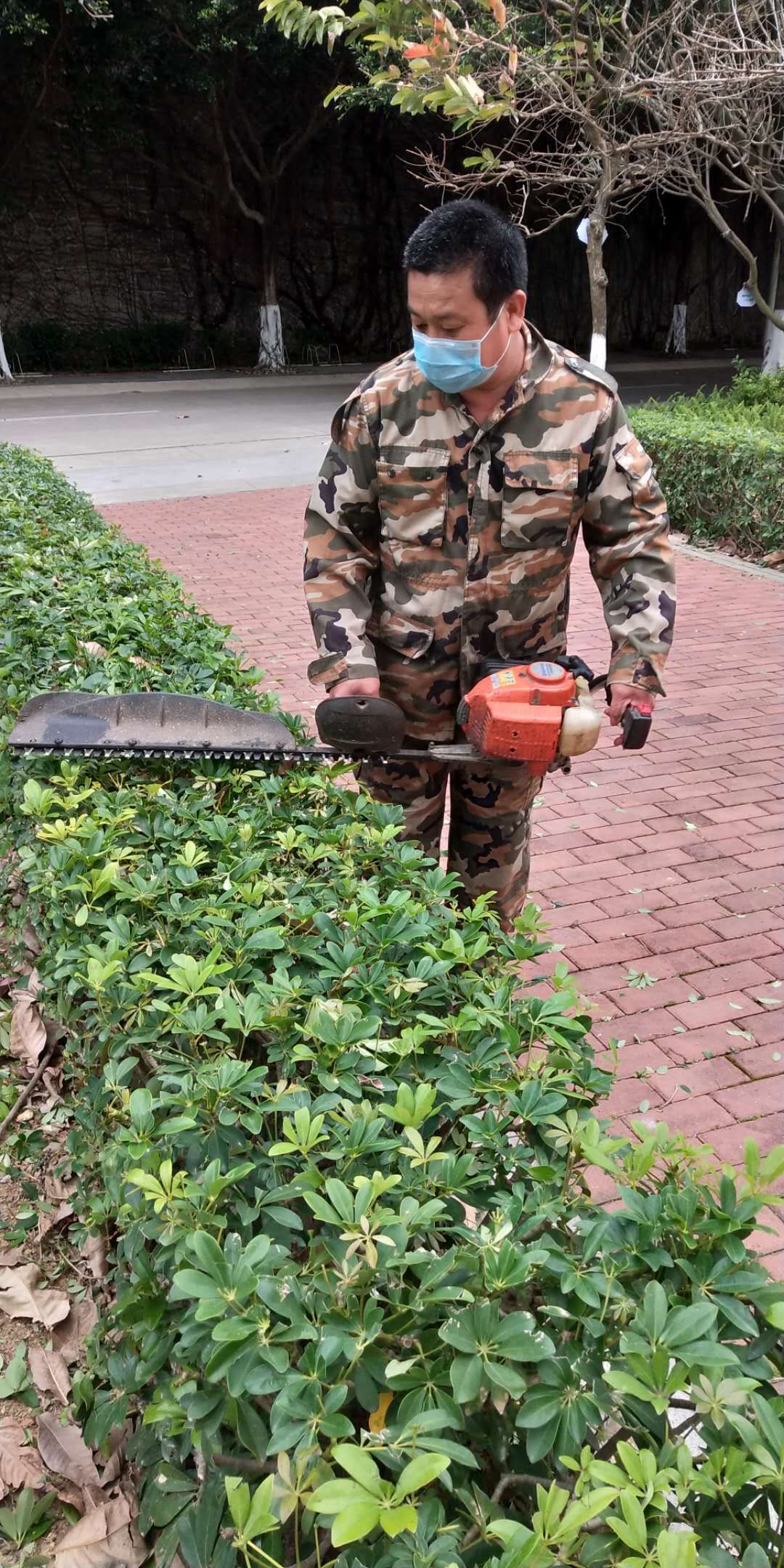 修剪美化绿植,利用春季苗木由休眠期进入生长期,及时组织对苗木进行修剪整形,清除杂草,进一步提升校园景观。