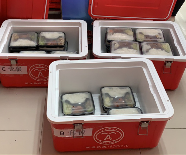 教职工有序排队,按照接龙序号领取套餐,并现场结算餐费