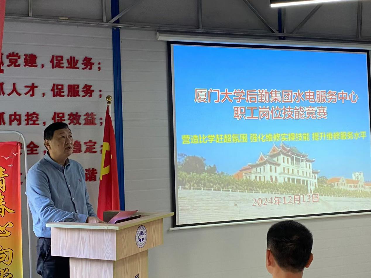 为充分发挥厦门大学后勤职工“师徒传承示范点”作用,弘扬爱岗敬业、精益求精的工匠精神,营造“比学赶超”的浓厚氛围,进一步提高水电维修岗位职工的职业技能素养,从而有力促进水电维修服务水平和质量提升,12月13日上午,水电服务中心在水电维修实训室开展了2024年度电工技能竞赛。集团副总经理王裕民、学校基建处施工管理科副科长余永顺、资产处水电气管理科洪泽波,集团部门工会、质监部相关负责人共同出席竞赛现场并作指导点评。