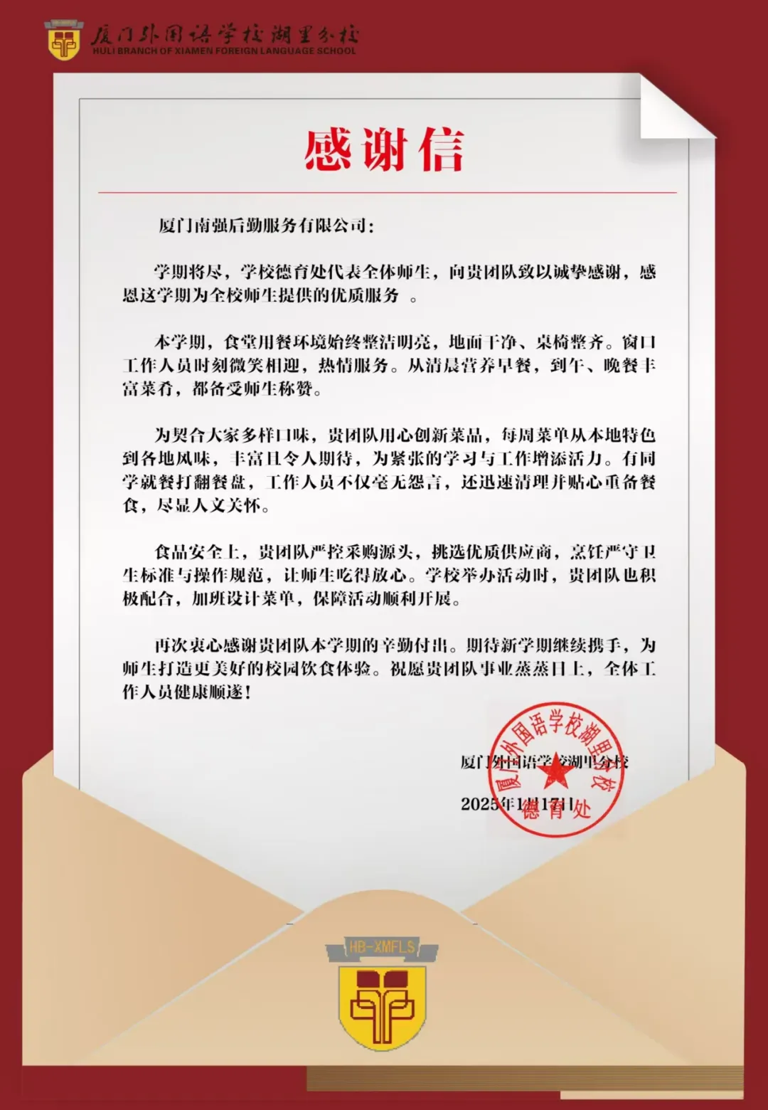 厦门城市职业学院给南强后勤服务公司颁发“文明食堂”牌匾及荣誉证书