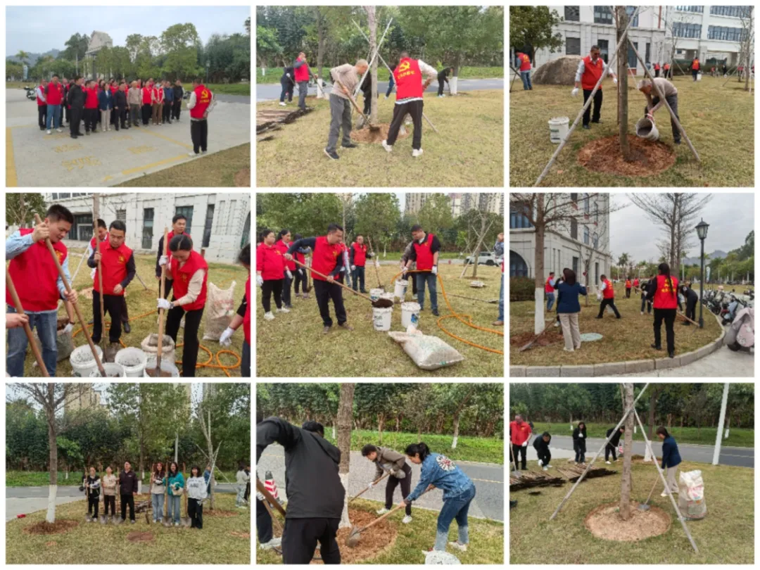 活动伊始,双方支部党员齐聚能源学院周边的绿化地块,开展义务植树劳动。大家合力松土、拌肥、培灌,滋养绿树。党员们以植树活动为纽带,在劳动中深化交流,将“绿水青山就是金山银山”的生态文明理念融入实践,为美丽校园建设注入红色动能。