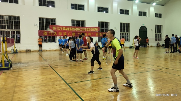 11月20-21日,厦门大学“嘉盟杯”第四届教职工羽毛球赛在思明校区风雨球馆进行,后勤集团两支战队经过奋力拼搏,过关斩将,特别是后勤集团1队在全校32支“战队”角逐中脱颖而出,创造有史以来最好的成绩——勇夺第三名,比出能打胜仗的后勤人精神,赛出永不服输的后勤人风采。