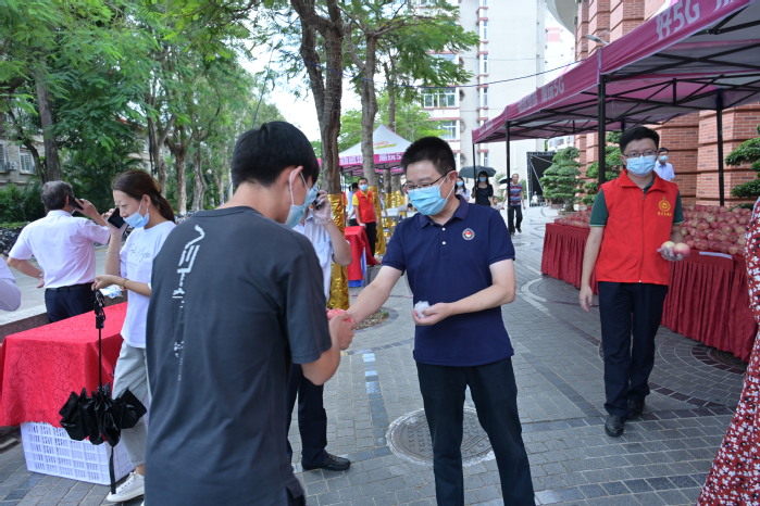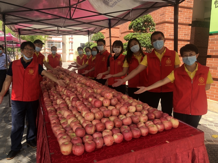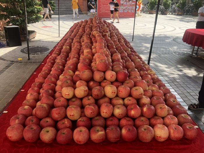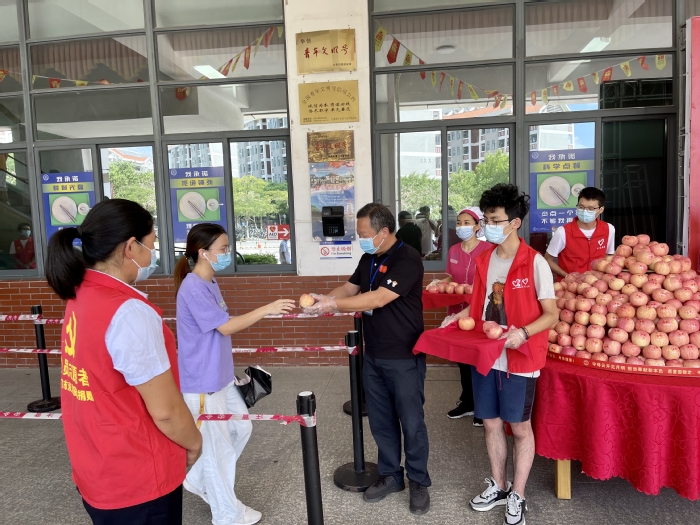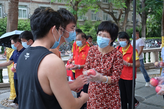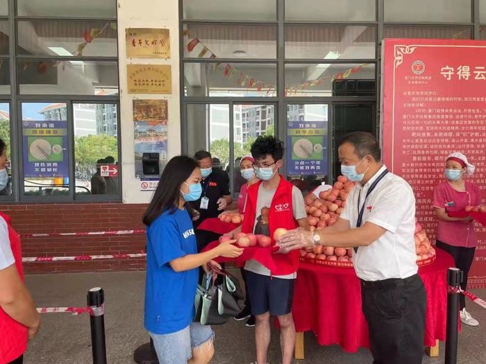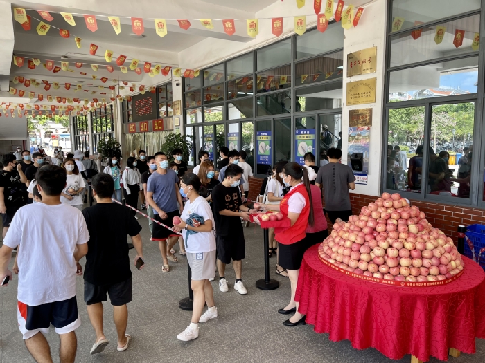 翔安校区竞丰餐厅门口广场也同步进行“送苹果·报平安”活动,校内其他餐厅也分别为每位用餐师生员工送苹果。