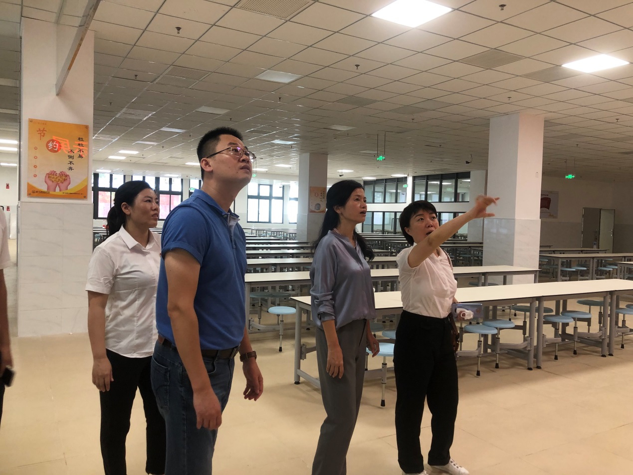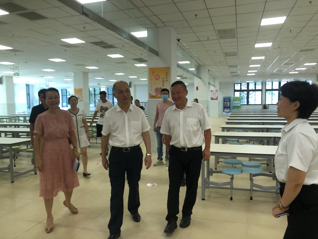 开业前,厦门市教育局局长郭献文、湖里区教育局局长吴雪慧到餐厅检查指导工作,集团总经理林公明陪同