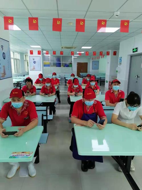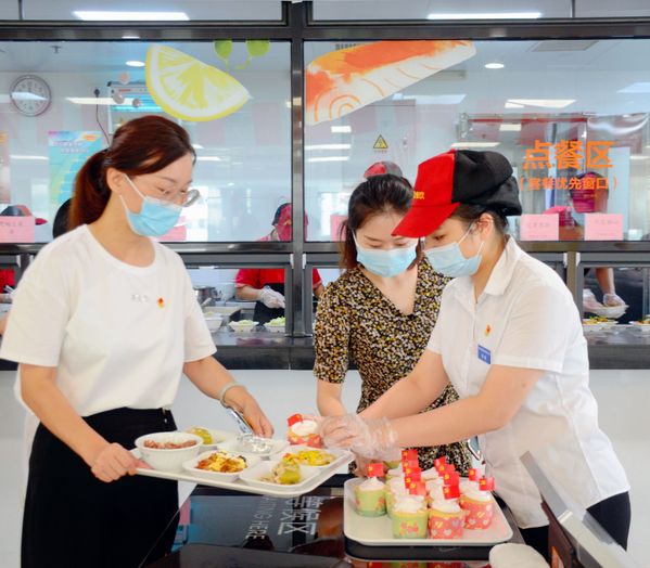 值得一提的是,后勤集团还有坚守校门值勤、餐厅做菜、绿化保洁、水电保障、运输服务等后勤人员,由于工作原因不能观看直播,由各党支部、党小组利用岗前一课等时机再统一组织观看,他们用实际行动在岗位服务中为党的百年华诞献礼。南强后勤服务公司海翼集团餐厅还推出红色菜品和糕点庆贺建党百年。