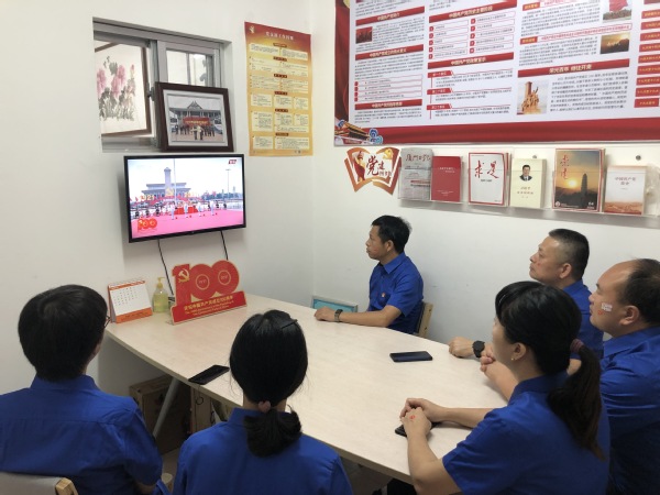 在中国共产党成立100周年的喜庆日子里,后勤集团各单位组织党员职工在会议室、餐厅、实训室等集中观看庆祝中国共产党成立100周年大会大会盛况直播,大家心潮澎湃,在回望波澜壮阔的百年征程中,牢记初心使命,汲取伟大精神,凝聚奋进一流新征程的磅礴力量。