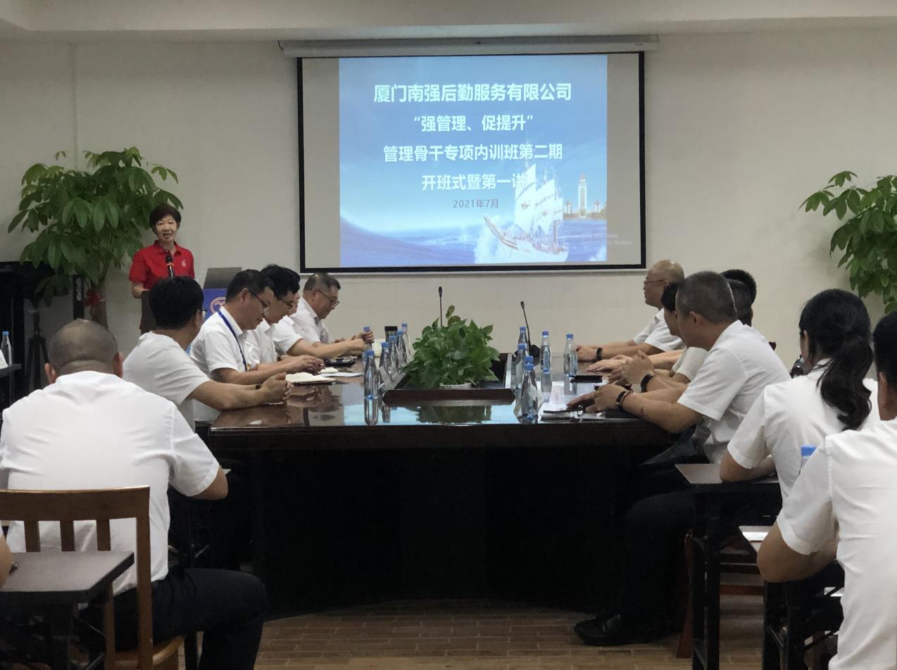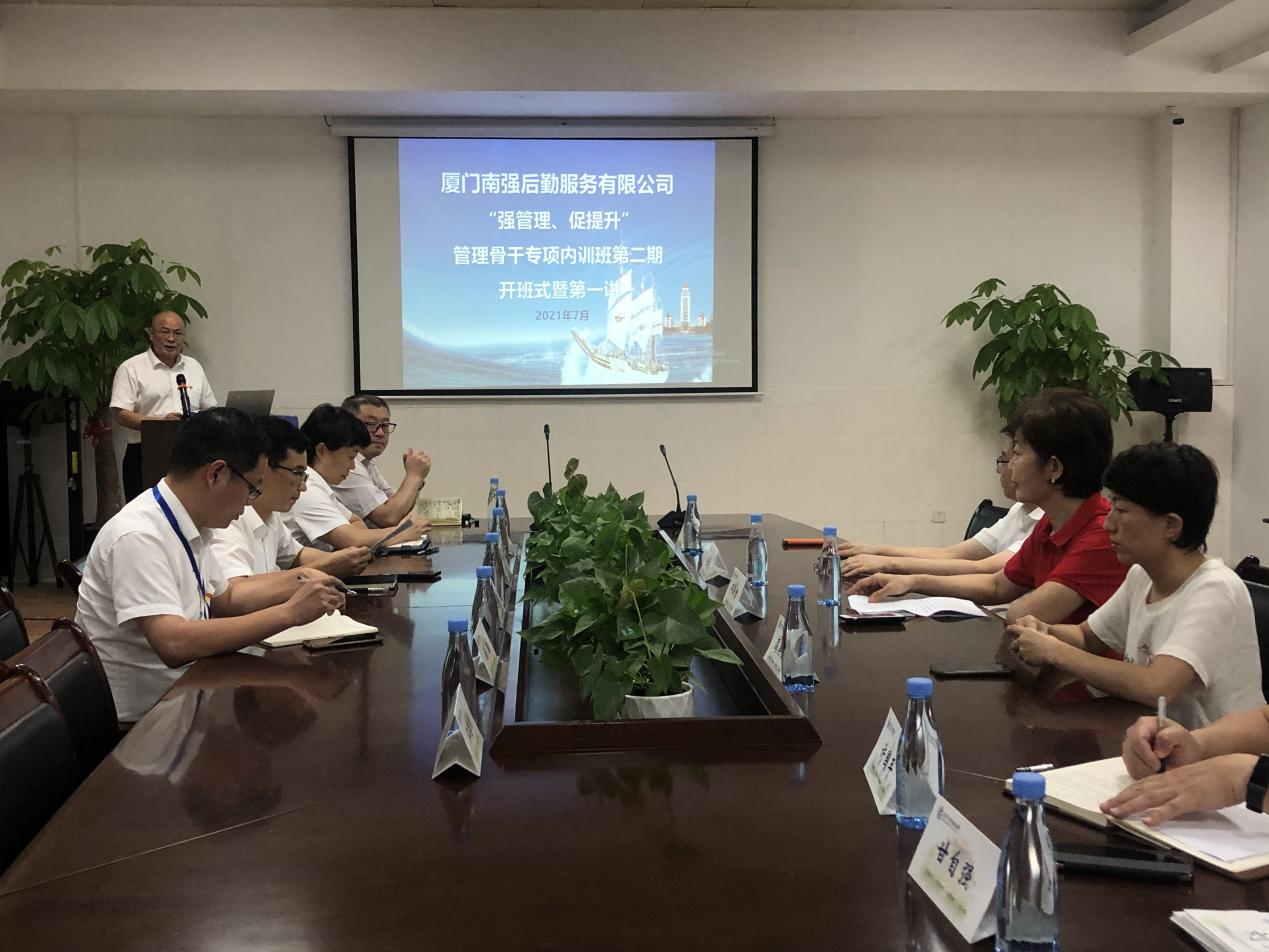 为进一步强化2020年公司“三提升、一自救”管理骨干专项内训班的培训效果,7月9日,南强后勤公司2021年度“强管理、促提升”管理骨干专项内训班暨第二期正式开班。集团党委书记杨云良、副书记邓泽君分别讲话,人力资源部经理兼质监部经理高美芸,厦门市企业家创新促进会监事李威老师应邀出席了开班仪式。