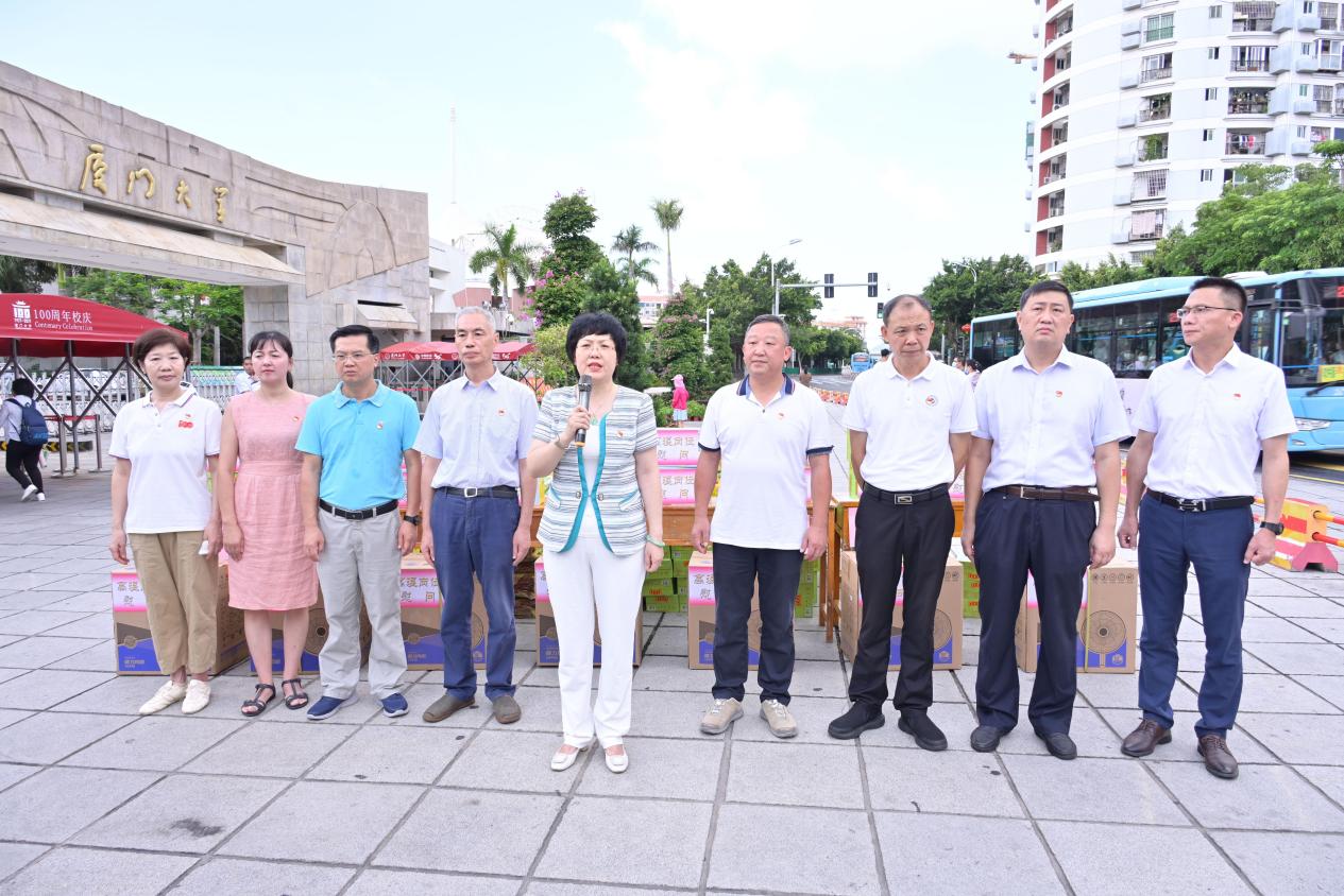 邓朝晖肯定了后勤集团为学校事业发展,特别是保障好百年校庆系列活动所作出的积极贡献。她代表学校对不畏高温、坚守岗位,为建设和谐、平安、美丽校园默默付出的后勤职工表示亲切问候和关怀。她指出,后勤集团今年先后获得了厦门大学先进基层党组织、厦门大学100周年校庆筹备工作先进集体等荣誉,四千多名后勤员工以高度的主人翁精神,高标准完成系列后勤服务保障工作,充分显示了爱校荣校、团结协作的精神,展现了厦大后勤人昂扬向上的精神面貌和过硬的工作作风。她仔细询问了大家的工作情况和身体状况,叮嘱后勤集团要深入做好防暑降温工作和劳动保护工作,做到劳逸结合,保障职工健康,确保平稳顺利度过高温时节。