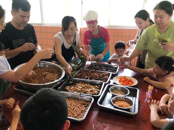 端午节期间及前夕,南强后勤公司校外各中小学餐厅也组织师生学包粽子活动。