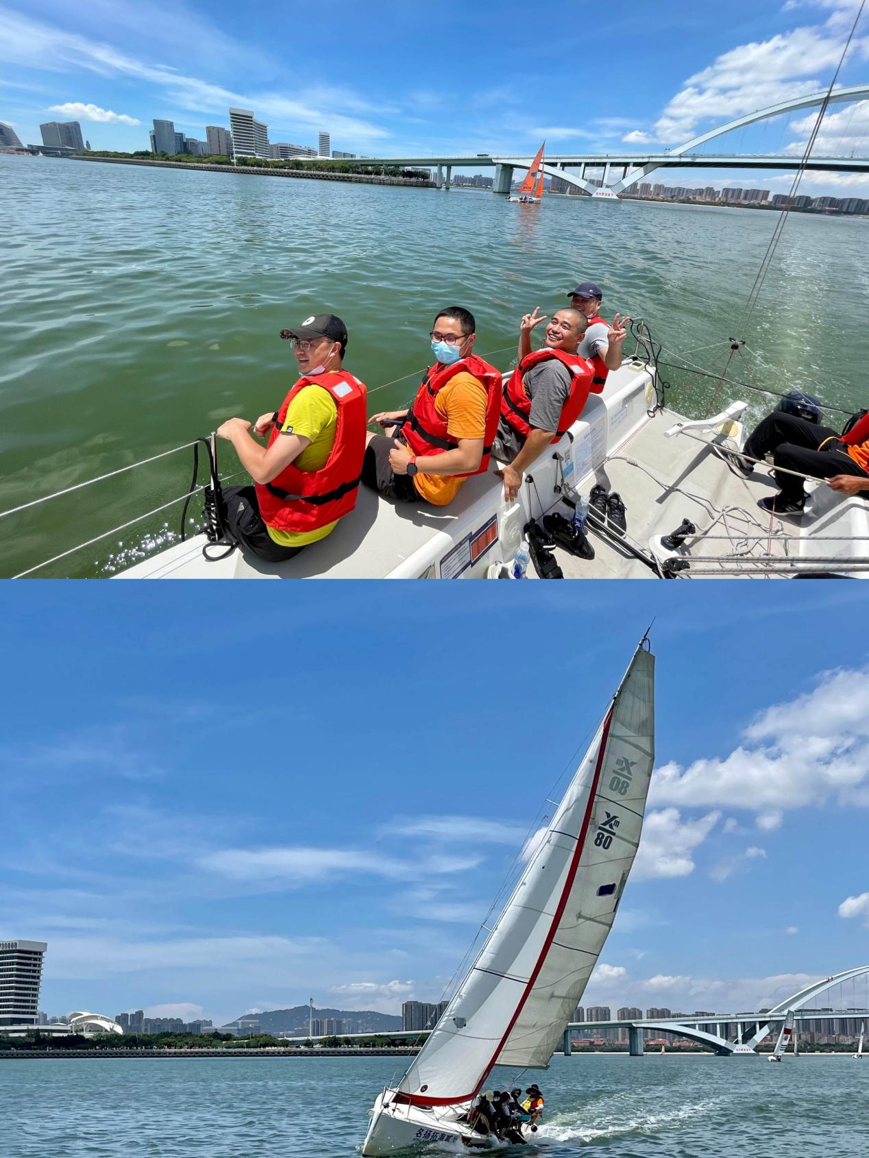 团队建设项目结束后,最精彩的“扬帆起航”活动在海上展开,炎炎烈日抵挡不了队员们对蓝天碧海的向往,他们怀着憧憬和热情,搭上帆船,迎风出发,在蔚蓝海洋中感受和体验大自然的魅力。