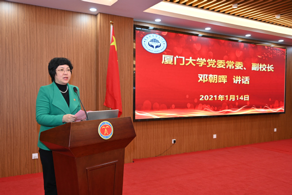 邓朝晖表示,2020年,在以习近平同志为核心的党中央的坚强领导下,校党委带领全校师生员工,织密织牢疫情防控网,保持工作节奏不变、力度不减,以新时代的厦大自强精神,奋力夺取疫情防控和改革发展的双胜利,以攻坚克难、争创一流的实际行动,践行初心使命,书写了教育的奋进之笔。她进一步强调,2021年是建党100周年、建校100周年,是“十四五”规划开局之年,是第二个百年目标新征程的开启之年。她对后勤集团员工提出四点希望:毫不放松抓懈好常态化疫情防控、要牢固树立服务育人的理念、坚持不懈抓好“三提升一自救”、扎实做好百年校庆服务保障。