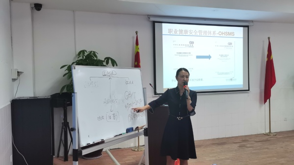 刘爱华老师在课上讲述了职业健康安全和食品安全管理体系的转版要求,人员安全应如何做到位、突发应急预案应如何落实、食品安全过敏源的把控及结合管理体系如何做好安全检查等。
