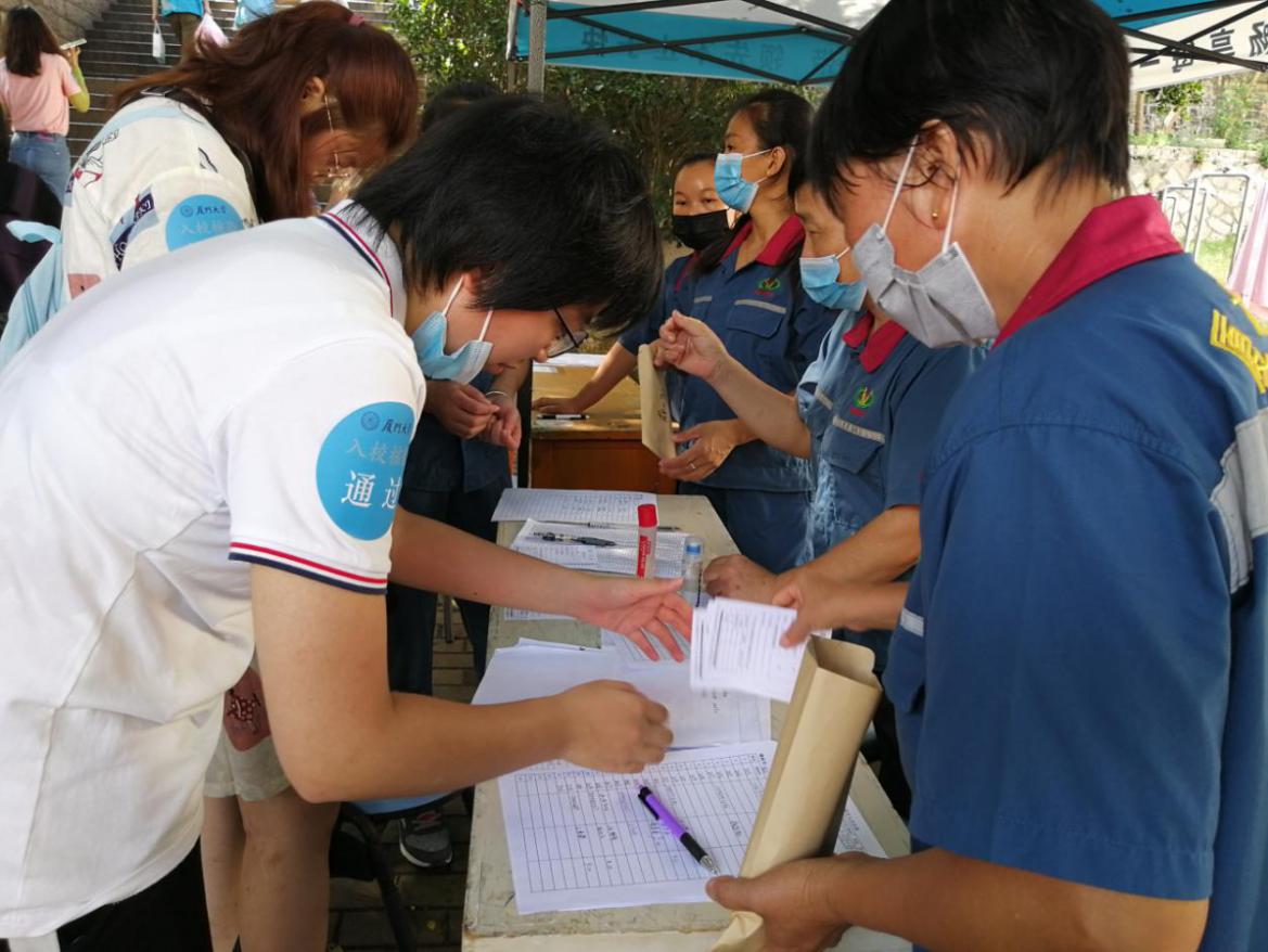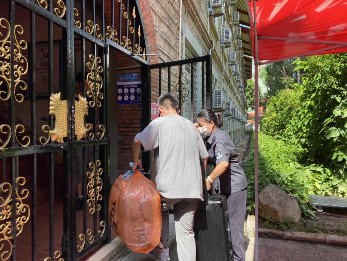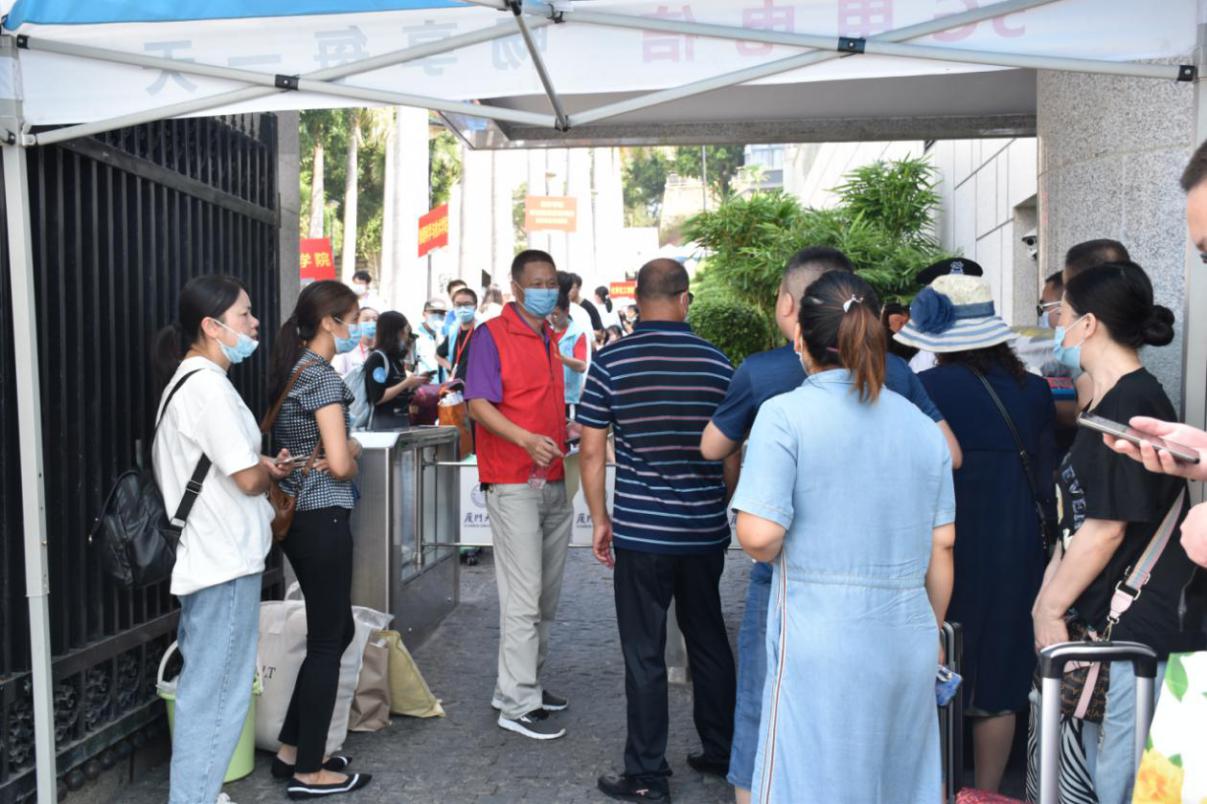 在宿舍园区,中心在各宿舍片区设立了入住办理点,为新生发放宿舍钥匙、空调遥控器等,确保新生安全顺利入住。宿舍工作人员各司其职:有的引导新生按照指定通道进行体温检测后进入园区和宿舍楼栋,有的认真发放宿舍钥匙,有的耐心解答新生住宿问题。部分宿舍安防员在维护好秩序外,还主动帮助新生搬运行李,服务周到又暖心。