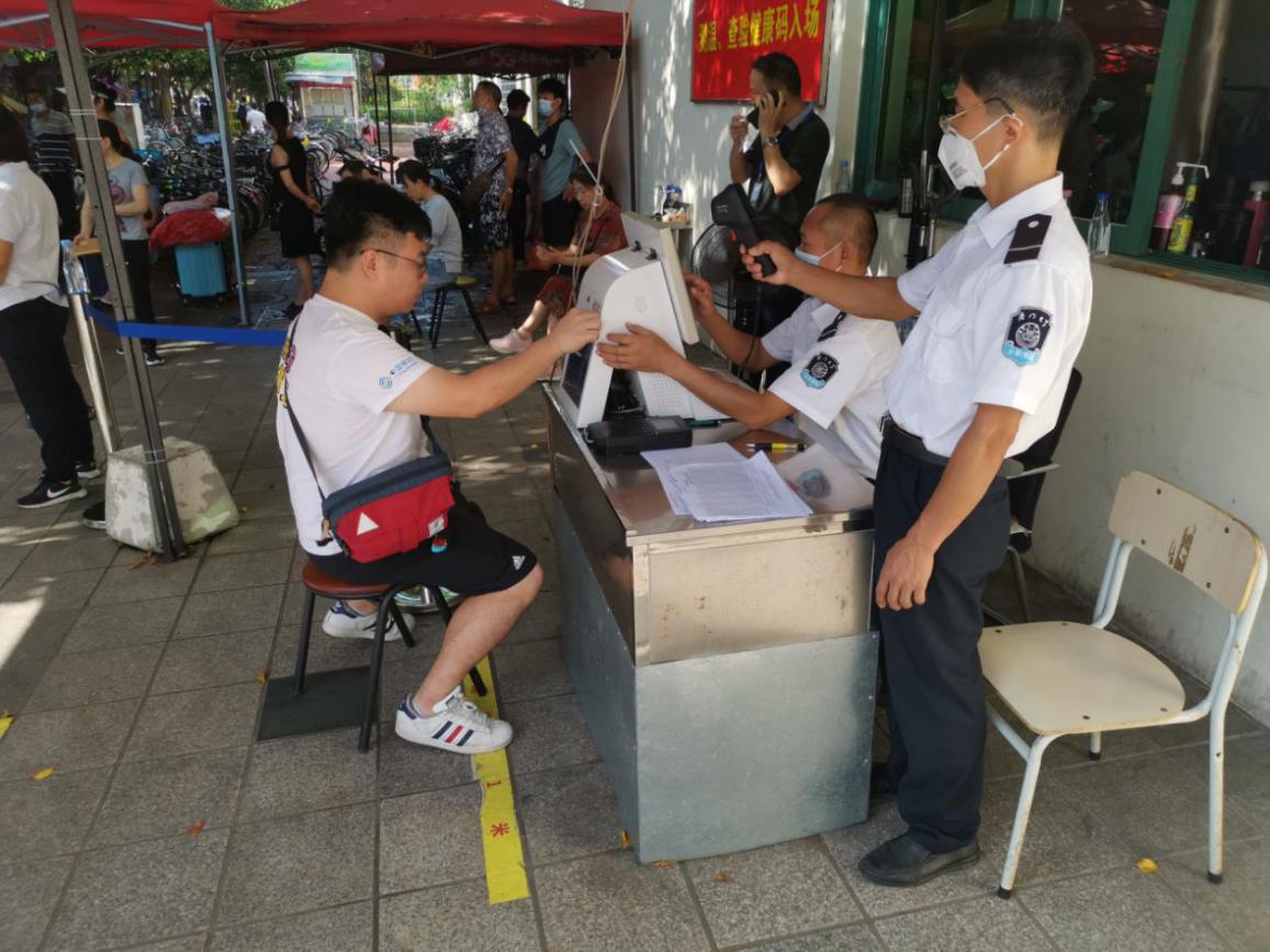 在校门口,安防员缜密细致地核查入校新生的录取通知书、八闽健康码,检测新生的体温,踏实守护师生身体健康和校园安全第一道防线。同时尽职尽责,耐心热情地引导接送车辆通行、解答家长询问。由于前期培训和演练到位,校门迎新工作有条不紊。