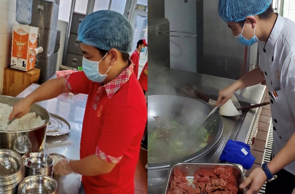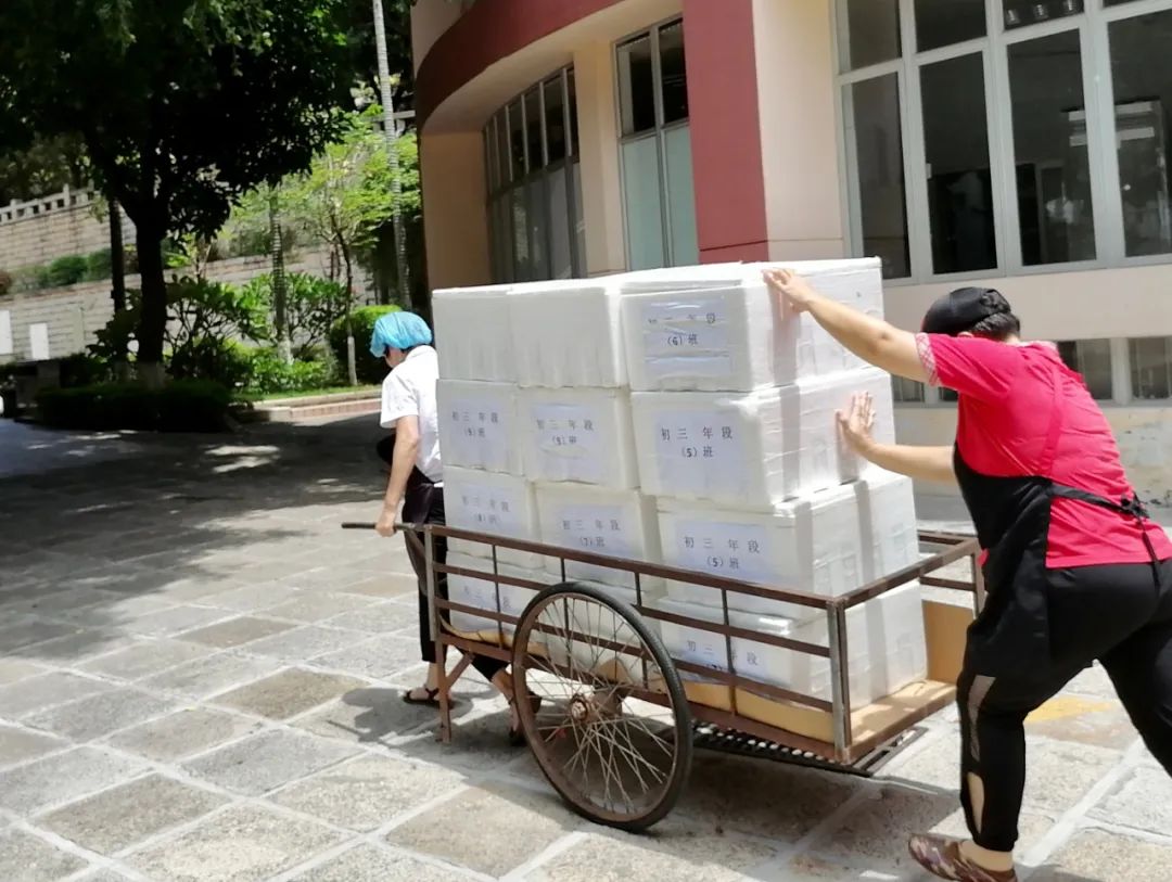 二中高中部餐厅员工助力鼓浪屿二中的中考供餐工作