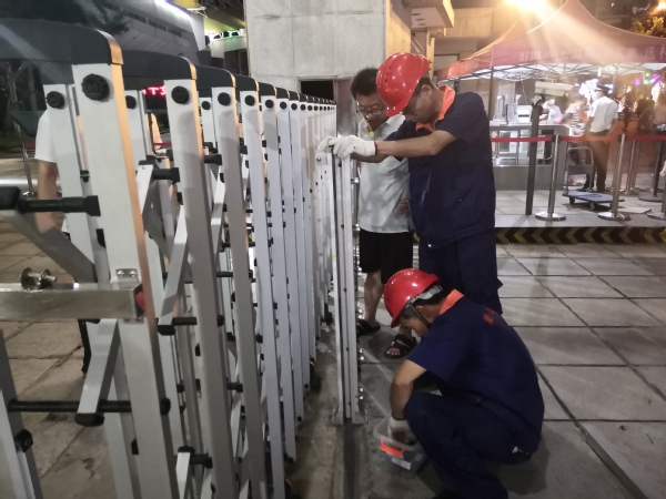 8月10日晚,工程维修部全体员工严阵以待、蓄势待发,并完成对西校门等重点区域防汛设备等物资布设工作