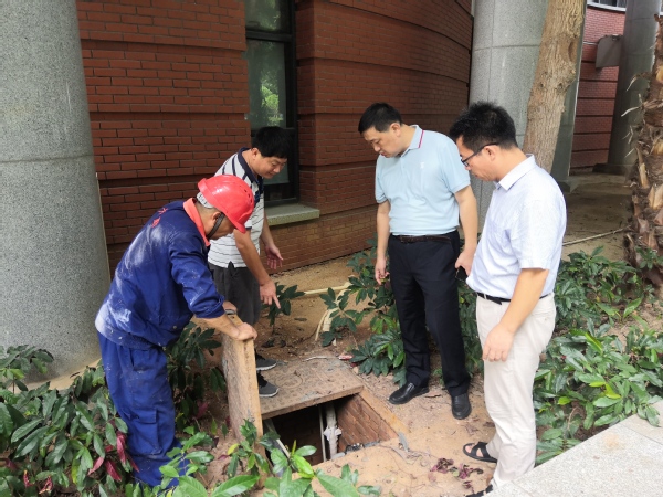 8月10日下午,集团副总经理王裕民带队前往地下井水泵房、科艺高压开关站、西校门、凌云仓库等重点区域检查防汛抗台准备情况