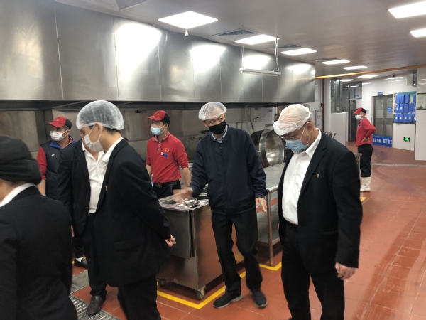 “体温检测表要每天及时更新,物品出入库验货收货要到位,桌子的摆放距离要……”早在开学前1个月,集团、公司各级领导高度重视此次供餐安全保障工作,集团总经理林公明、副总经理陈有亮及公司总经理罗阳等多次到餐厅一线检查指导供餐安全准备工作情况,检查仔细到位,不放过任何一个角落、一个细节,确保供餐安全。