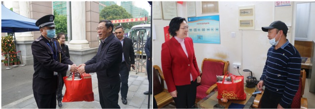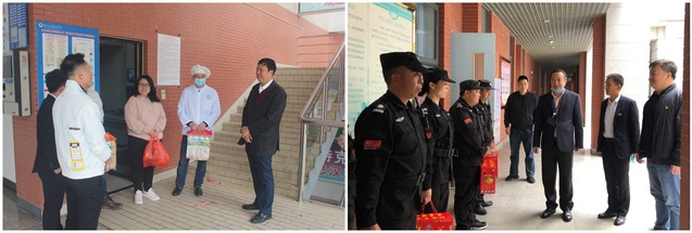 慰问人员分别来到颂恩楼物业、学校总值班室、保卫处总值班室、大学路派出所、大南校门、高压开关站(科学艺术中心)、厦大信箱、群贤校门、厦大医院、公务车队、逸夫楼接待中心、芙蓉园抽水泵房、勤业餐厅、石井区、花圃、白城校门、海韵学生公寓等地,与在岗人员一一拜年,送上慰问品,代表学校表示衷心的感谢,了解值班人员的工作情况,感谢大家坚守岗位,希望大家认真履职,扎实做好各项疫情防控工作,为留校师生提供优质公共服务,保证春节期间校园安全稳定。