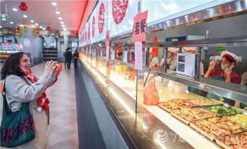 形式改变,年味不变。校领导也到场为留校师生送去节日的祝福。原先的围炉餐厅场地依旧张灯结彩,红红火火,营造了喜庆的过年氛围。中心还特地准备了装有花生糖果的过年大礼包,送给前来取餐的留校师生。