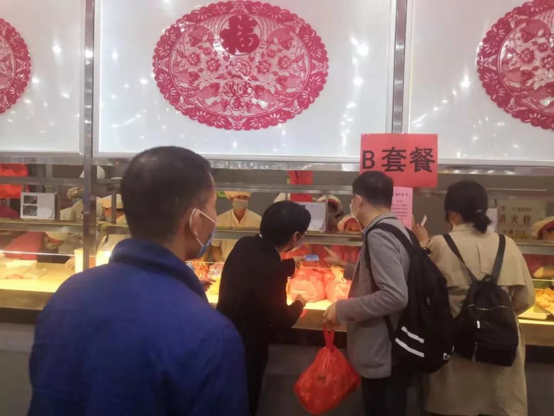 校学生处等相关职能部门提前做好学生告知工作,餐厅加强人员疏导,同学们或打包回宿舍,或在餐厅享用美味,现场井然有序,没有出现过多的人员聚集。