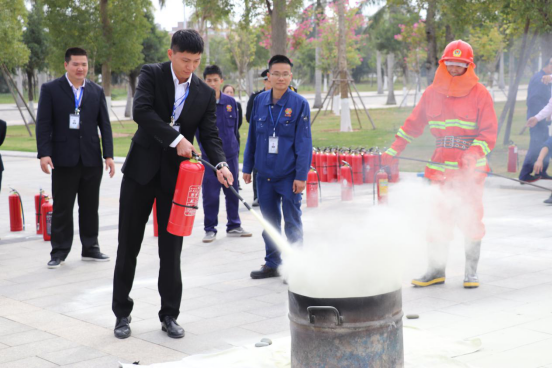 疏散演习结束后,翔安校区保卫办主任陶元升对本次演习进行了点评,并向大家强调了消防的重要性,讲授了应急逃生技巧及注意事项。随后南强物业维序队长陈辉讲解、示范灭火器的正确使用方法、注意事项等内容。讲解结束后,全体参训人员逐一使用灭火器进行灭火操作。