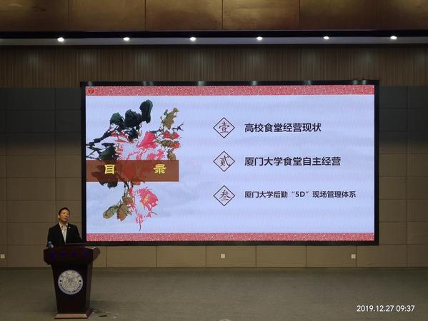 (江森民为大家作了《厦大后勤餐厅“5D”现场管理标准》的分享)