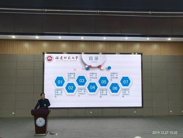 福建师范大学后勤管理处副处长翁国柱为参会代表作了题为《新形势下如何加强学校食堂食品安全风险防控》的分享,他在分享中强调,学校食堂食品安全风险防控不止是后勤的工作,更是全体高校管理层都应重视的问题,福建师范大学在食品安全方面不光重视领导监督和健全组织机构,更是加强制度建设、健全防控体系,把加强校地协作、提升防控水平和加强校校协作、把好防控源头以及加强日常监管,落实防控措施等工作齐头并进,汇总融合,多位一体的保障校内师生的食品安全,做好师生“舌尖上的健康”的保障工作。